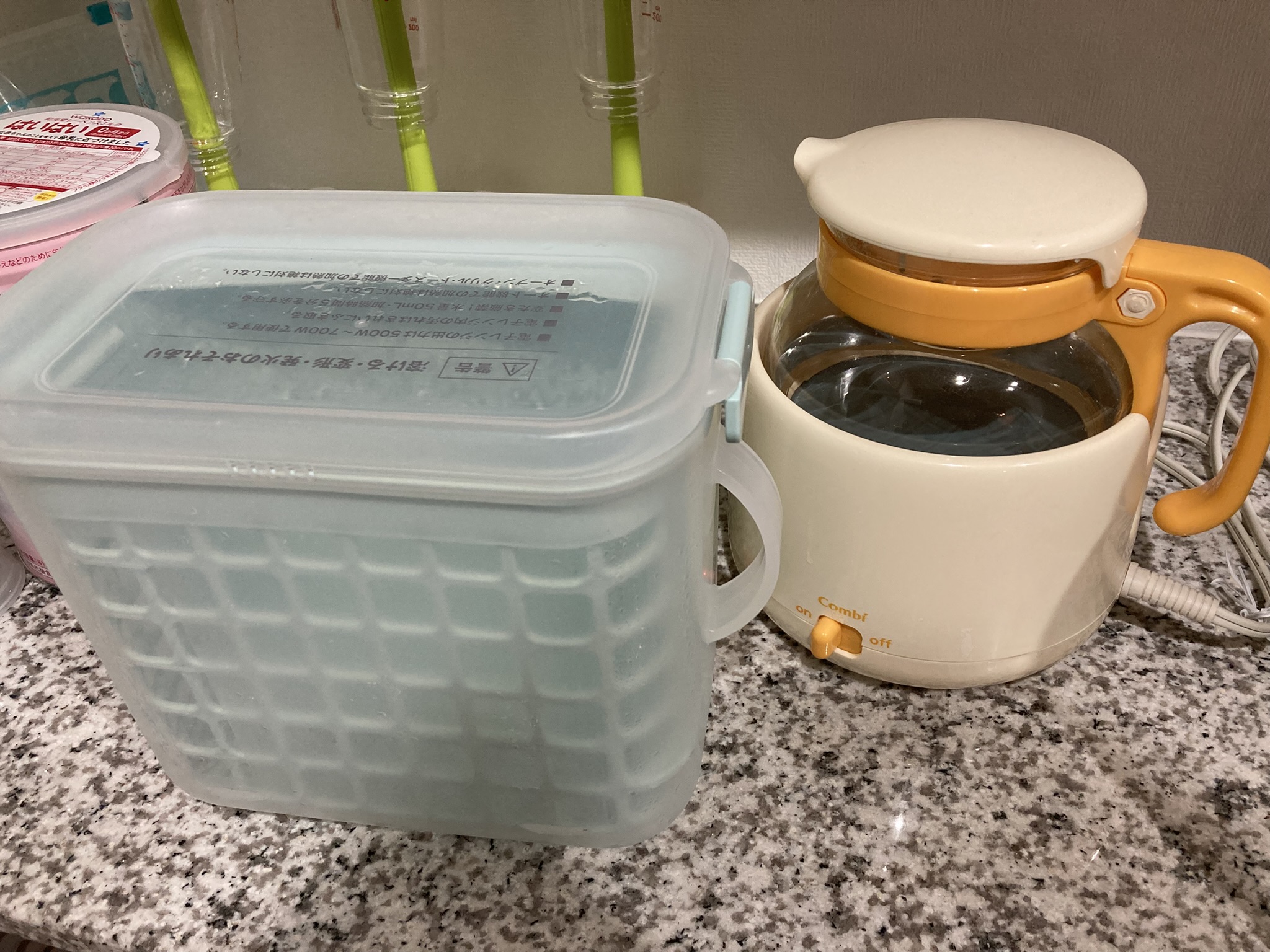 ミルクをあげるなら調乳ポッドと消毒ケースは必須になると思います。